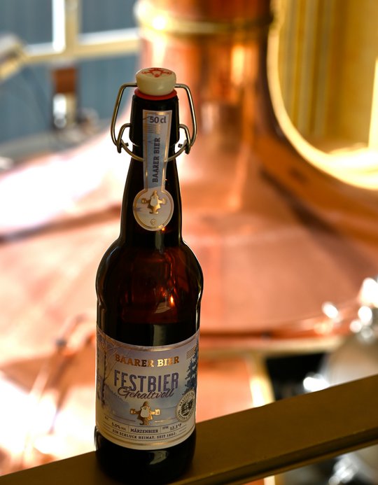 Wenn die Temperaturen draussen immer kälter werden und die Menschen in der warmen, gemütlichen (Gast-) Stube gemeinsam gesellige Momente geniessen, dann ist Festbier-Zeit. Wie es die Tradition vorsieht, verfügt dieses Bier mit dem Typ «Märzen» über einen gehaltvollen Charakter, der überzeugt. Dieses goldgelbe, vollmundige Festbier ist der stimmungsvolle Baarer Beitrag zur dunkleren Jahreszeit. Wir empfehlen es — gerade für kalte Tage — wärmstens!