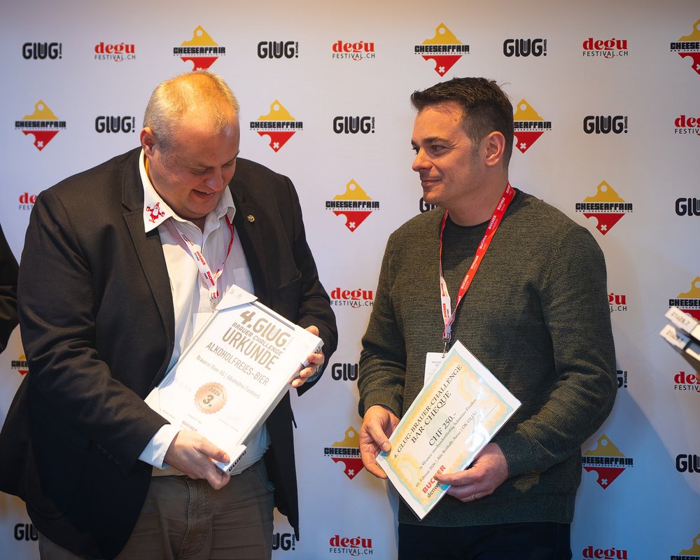 Glug 2026 News: Unser Alkoholfrei Feinherb gewann die Bronzemedaille am Nationalen Treffpunkt für Brauer und Getränkeproduzenten.An der GLUG.swiss Brauer-Challenge gewannen wir bereits im Jahr 2024 mit dem Festbier Gehaltvoll in der Kategorie «Bier mit Schweizer Rohstoffen» die Goldmedaille. Nun durften wir letzte Woche in der Sparte «Alkoholfrei» den dritten Platz entgegennehmen.